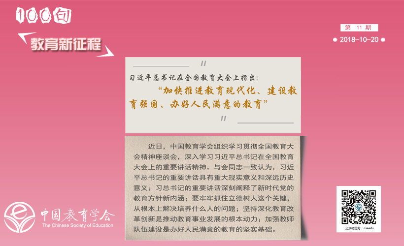 “习近平总书记在全国教育大会发表重要讲话,对新时代教育工作作出全面部署,提出总体要求,进一步完善了新时代中国特色社会主义思想有关教育的重要论述。”中国教育学会名誉会长、北京师范大学资深教授顾明远认为,党的十八大以来,习近平总书记就教育改革发展提出了一系列新理念新思想新战略,这次报告是新时代中国特色社会主义思想的重要组成部分,是建国理政的重要内容,我们应该好好地学习。